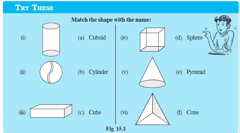 Visualising solid shapes 10chapter ± 154 mathematics do this match the following pictures (objects) with their shapes: Faces, vertices, edges and volume. Geometry math solids cone cube cuboid cylinder prism pyramid sphere surface volume. For example, look at the following objects. So, let us learn more about them... So, let us learn more about them.