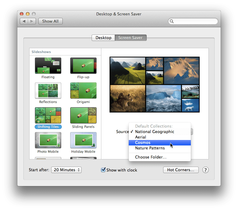 You don't have to wait for your screensaver to come on in order to see it. If i return to preferences, it still lists the correct album from the computer, and selecting preview begins a slideshow from the correct album. 21.07.2015 · a video of national geographic images featured in the default screensaver for apple tv. You will then see the location of that …